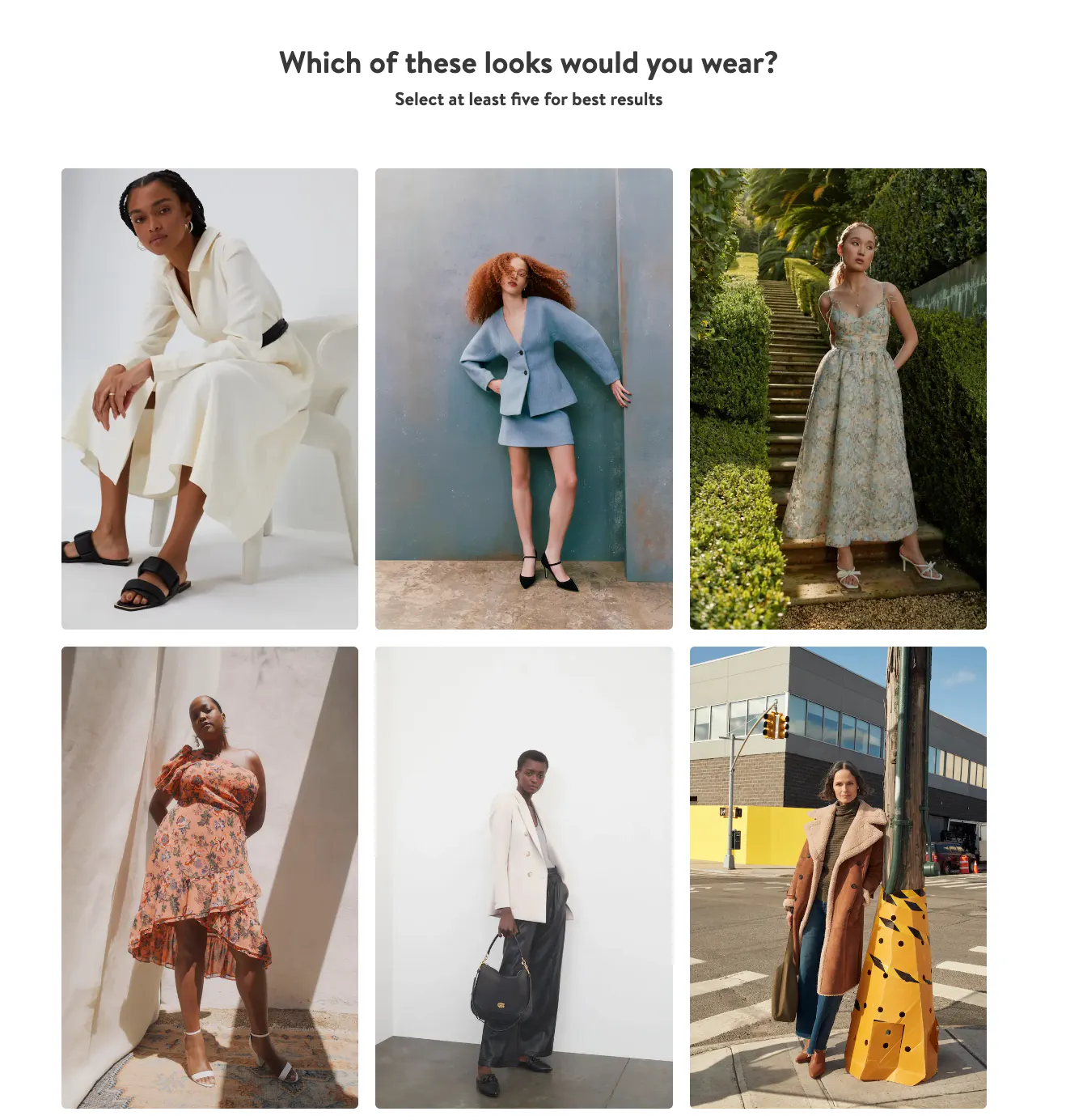 Nordstrom's style finder quiz asks visitors, which of these looks would you wear?